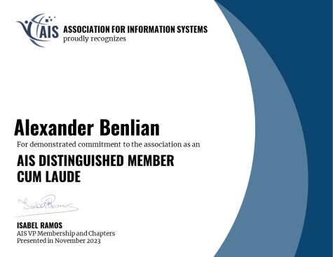 This recognition highlights Prof. Benlian’s outstanding research achievements and underscores his international influence in his field.